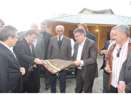 İDRİS NAİM ŞAHİN BERABERİNDEKİ HEYETLE İLÇEMİZDE![]() İçişleri eski Bakanı Sayın İdris Naim ŞAHİN ve beraberinde Artvin Valimiz Sayın Kemal CİRİT, Erzincan Valimiz Abdurrahman AKDEMİR, Kars Valimiz Sayın Eyüp TEPE ile Artvin Milletvekilimiz Sayın İsrafil KIŞLA beraberindeki heyet İlçemize bir dizi ziyaret’te bulunmuşlardır. İlçemiz Kaymakamı Sayın Cemil SARIOĞLU tarafından İlçe girişinde karşılanan Sayın Bakan ve beraberindeki heyet Şavşat Evine geçtiler. Yöremiz mimarisine uygun olarak inşa edilen Şavşat Evi'nde İlçemiz Kaymakamı Sayın Cemil SARIOĞLU tarafından İlçe hakkında kısa bilgi verildikten sonra yöremize özgü yemeklerden ikram edildi.Samimi bir sohbet havasında geçen ziyaretten duyduğu memnuniyeti dile getiren Sayın Bakan Şavşat Evi Anı Defterini imzalayarak, Artvin’e daha önce 5 kez geldiğini ve her gelişinde daha çok gelişen ve değişen bir Artvin gördüğünü belirten Şahin, “Artvin’i her geçen gün gelişen bir şehir olarak gördüm. Artvin gerek yerel hizmetler gerekse merkezi idare, hükümet faaliyetleri ve yatırımları ile daha da çok gelişmiş bir görüntü veriyor. Şavşat’ta oteller yapıldığını gördüm. Bu da demektir ki ilçede turizm gelişiyor ve turizme yönelik alt yapı yatırımları gelişiyor. Sevindirici bir tablo ile karşılaştım.” diye konuştu. Artvin insanının misafirperver ve çok sıcakkanlı insanlar olduğunu ifade eden Bakan Şahin, “Artvin insanının güzelliği ve misafirperverliği tartışılmaz. Hanımıyla, erkeğiyle, küçüğüyle, büyüğüyle çok daha insancıl, çok daha misafirperver ve çok daha medeni bir tavır içerisinde gördüm. Bu bakımdan Artvin insanı ile her zaman iftihar ediyoruz.”dedi. Daha sonra Sayın Bakan ve beraberindeki heyet ilçemizden ayrıldılar. |